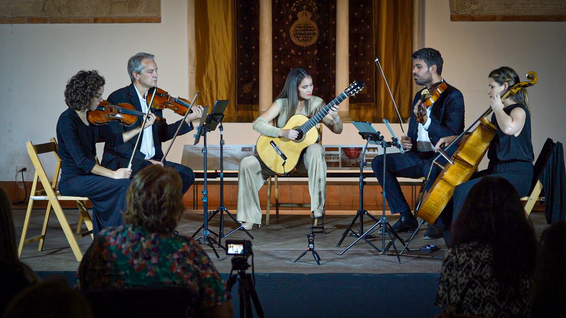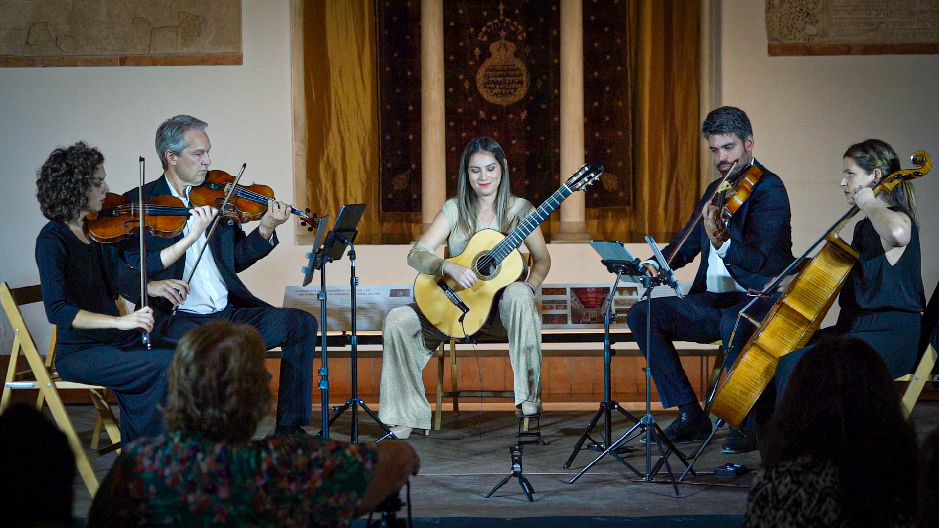 En esta ocasión, los protagonistas fueron la guitarrista Angélica Rodríguez, ganadora de la VIII edición del Concurso Internacional de Guitarra Clásica Ángel G. Piñero, y el Cuarteto Chagall, habituales en los conciertos de la Asociación. Ambos artistas ya habían compartido escenario este año en el concierto celebrado en el Centro Botín de Santander el pasado 27 de junio.