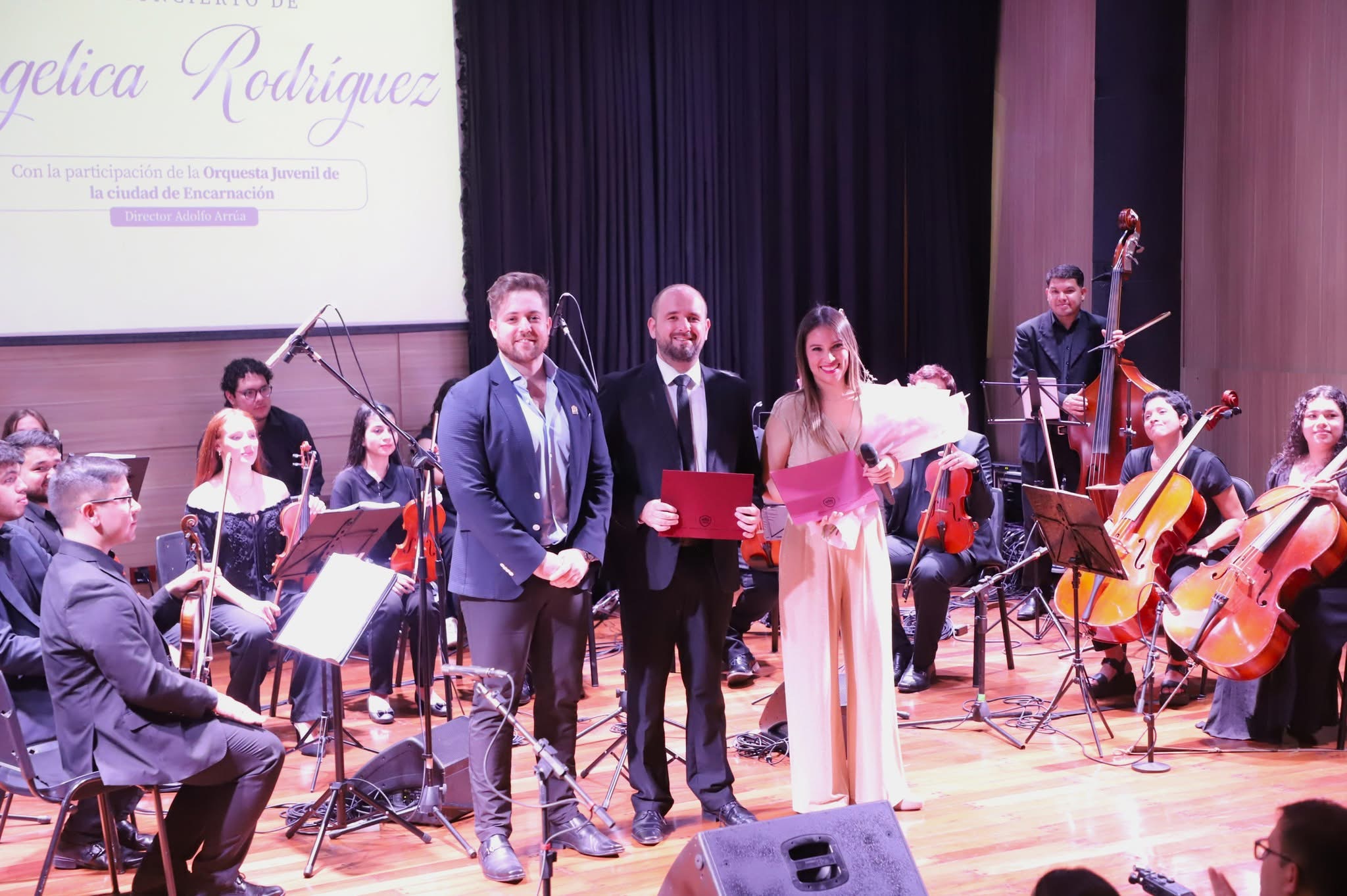 The concert brought together the elegance of classical guitar and the expressive power of the orchestra, with the participation of the Youth Orchestra of the city of Encarnación, conducted by Maestro Adolfo Arrúa.